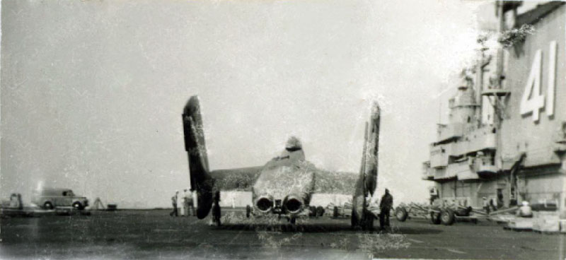 Experimental F7U Cutlass on the cruise in the Caribbean when we tested the cantered deck theory out.