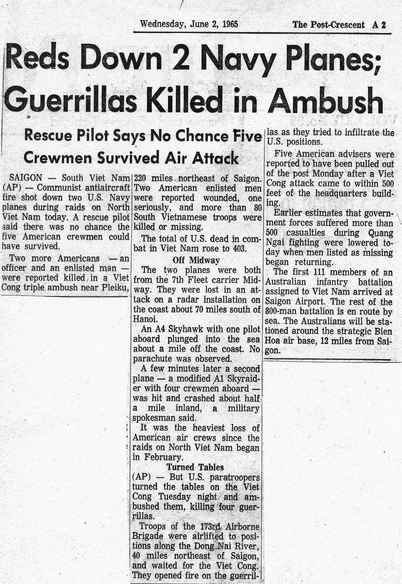 The Post Crescent June 2, 1965 - article courtesy of Ron French
