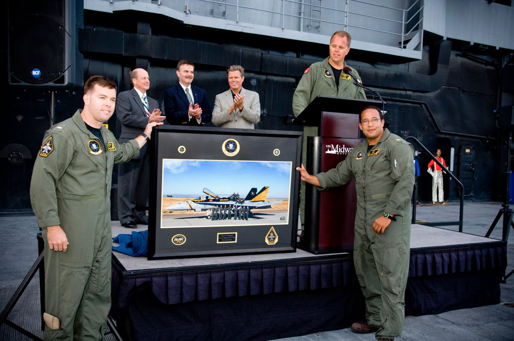 Skipper Hyink and the VFA-151 wardroom present Ready Room One with a squadron photo (6/30/09)